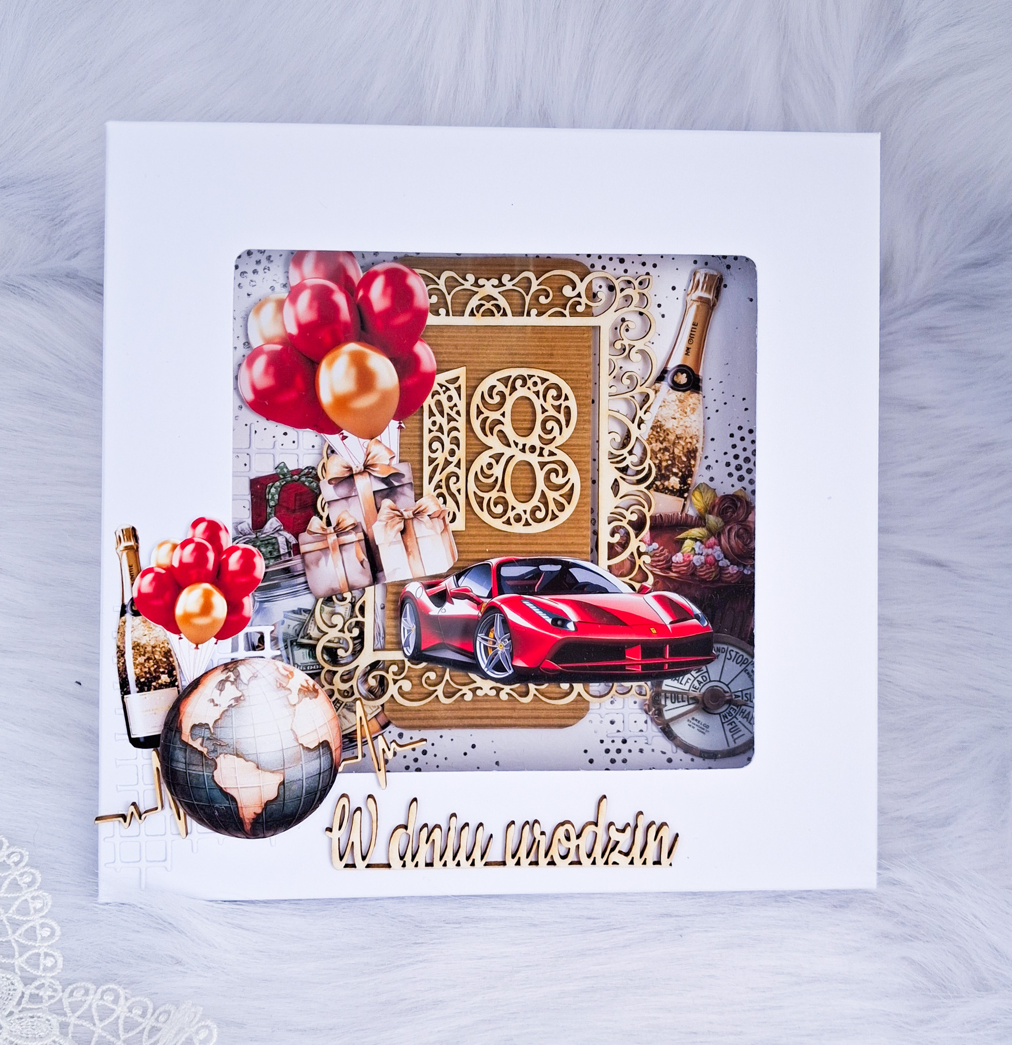 18 urodziny kartka w pudełku 3D ręcznie robiona K18NCZ