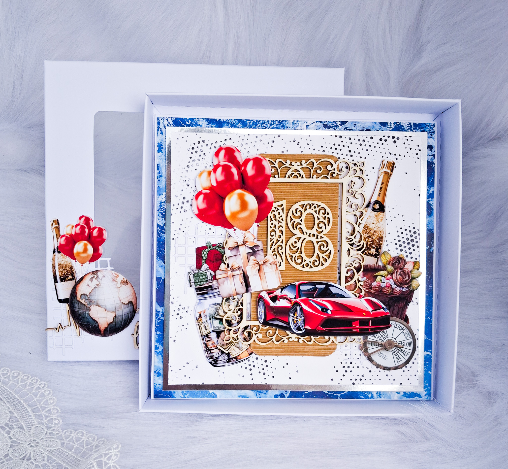 Strona główna » KARTKI OKOLICZNOŚCIOWE » 18 urodziny kartka w pudełku 3D ręcznie robiona K18NCZ
