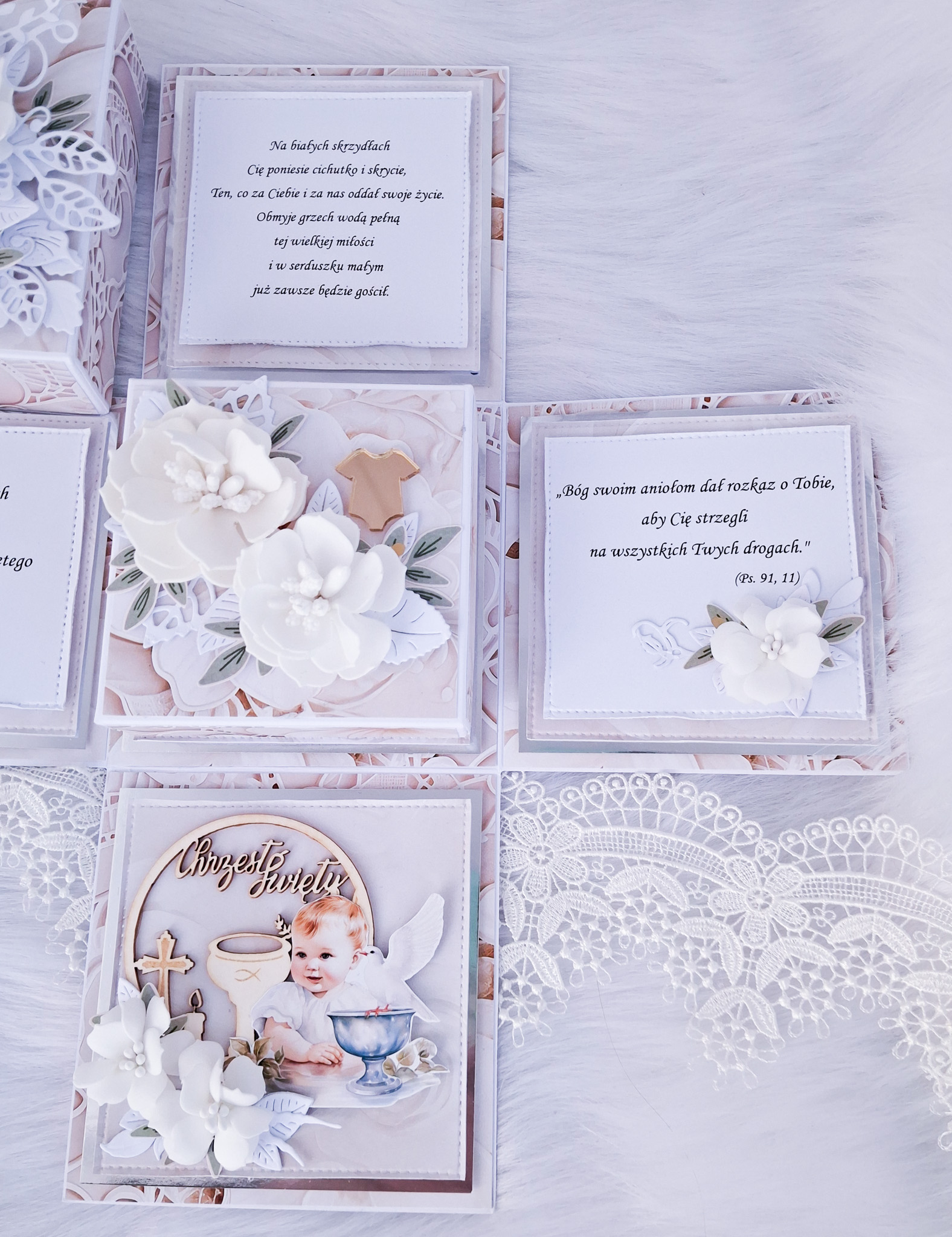 Exploding box Chrzest Święty to ręcznie robione, kreatywne pudełko z elementami scrapbookingu, to idealnym pomysłem na prezent.
