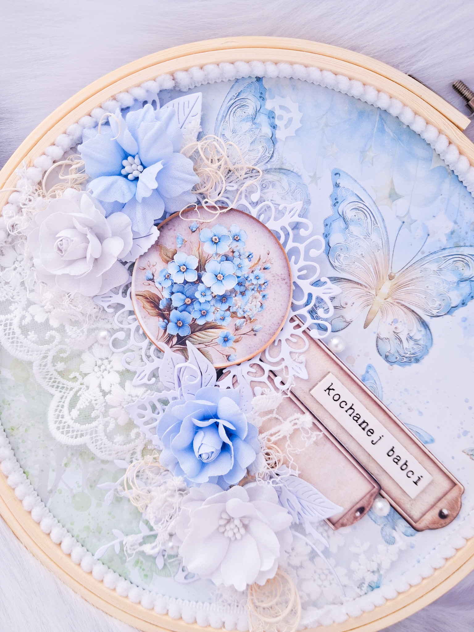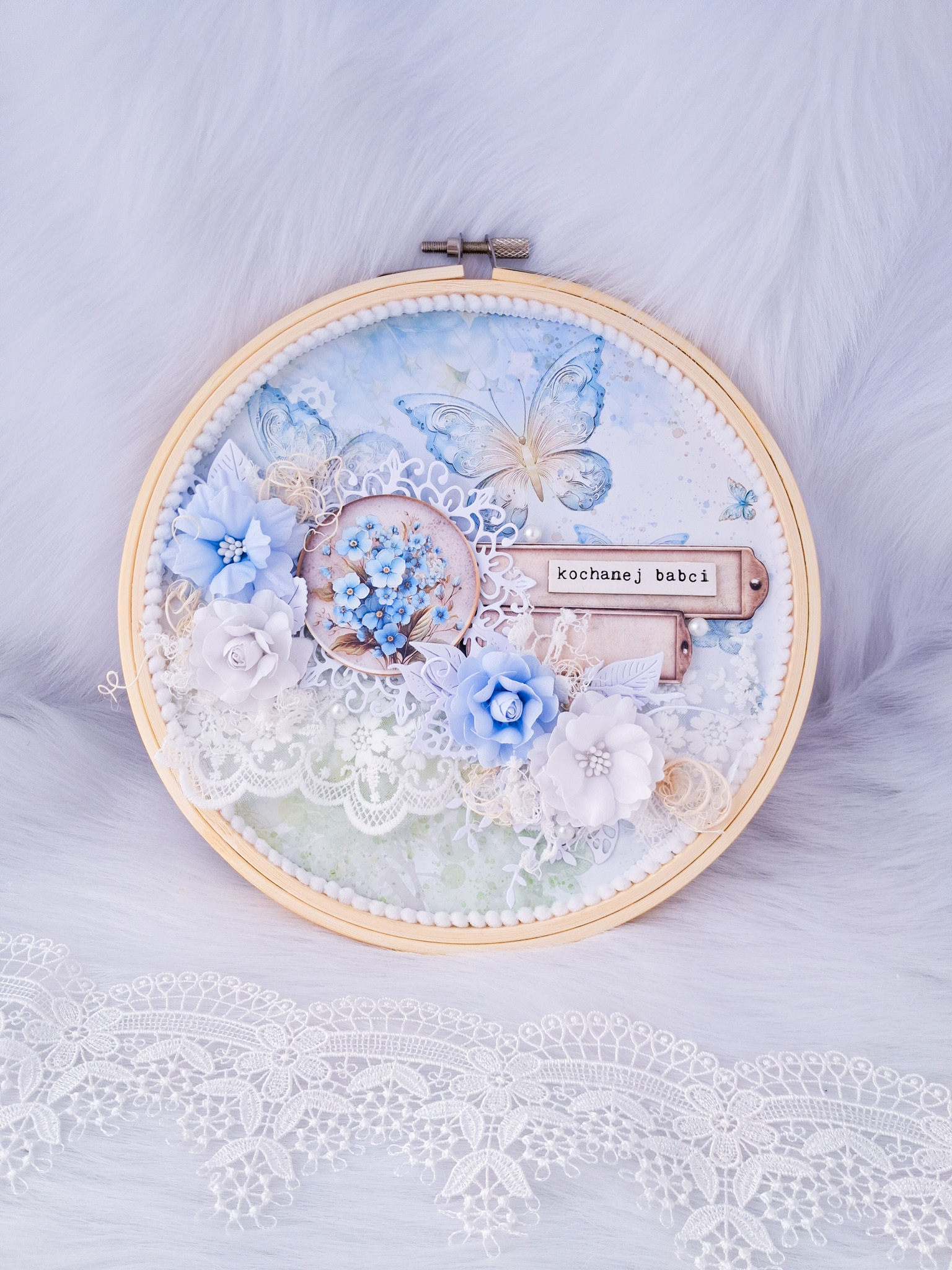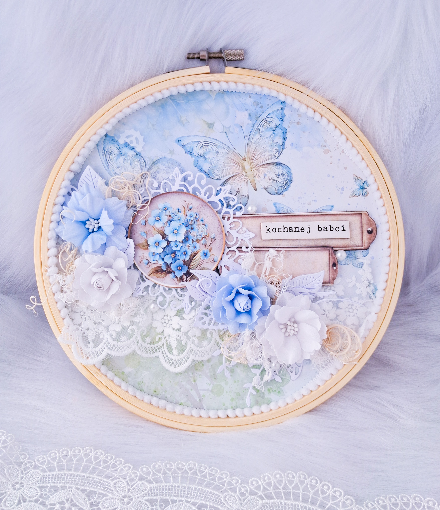 Każdy tamborek powstaje ręcznie, z dbałością o najmniejszy detal. Starannie dobrane kolory tworzą niepowtarzalną ozdobę, która pięknie dopełni wnętrze i codziennie będzie przypominać o miłości wnuków.