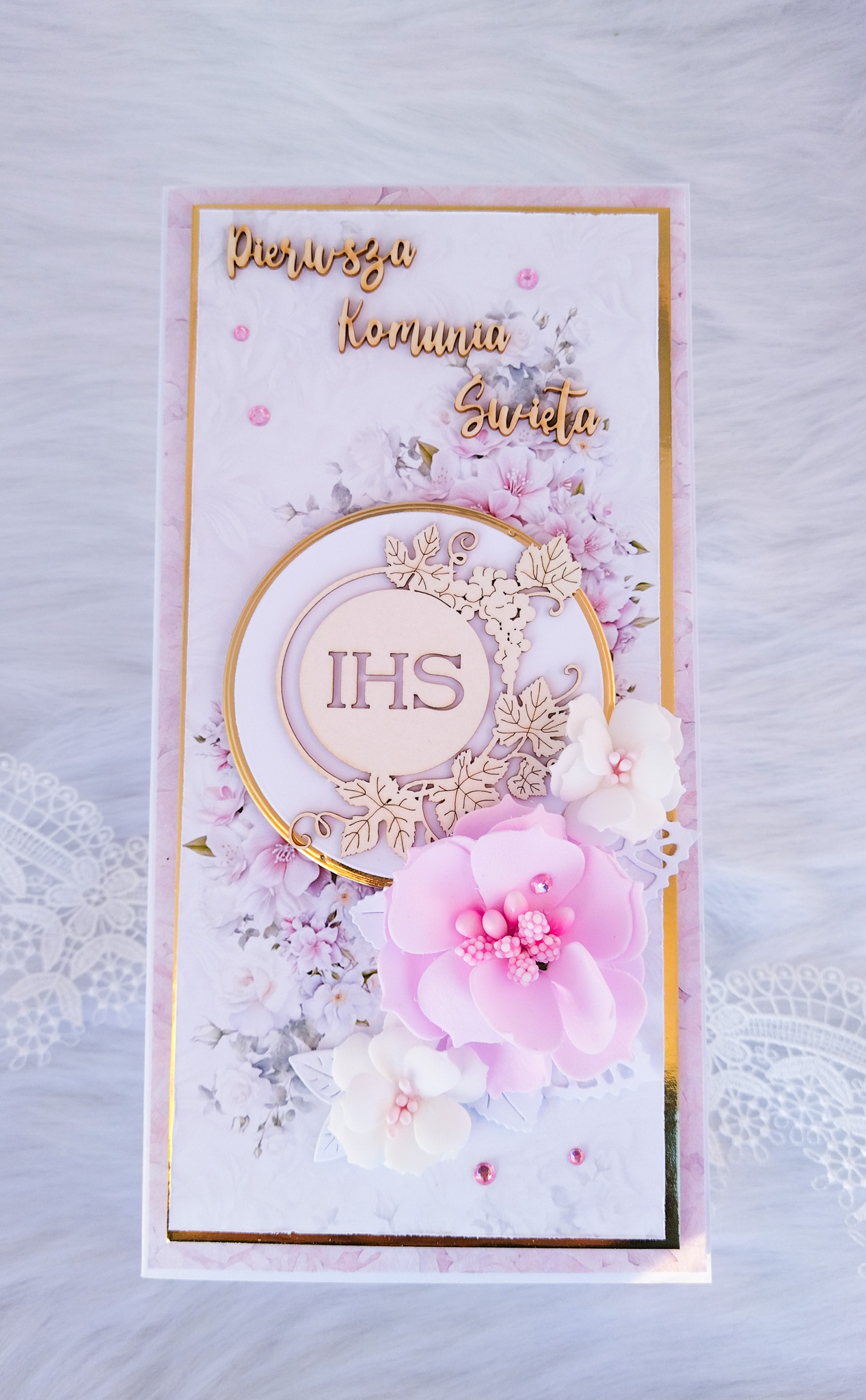 Pamiątka Pierwszej Komunii Świętej – Ręcznie Robiona Kartka w Pudełku
