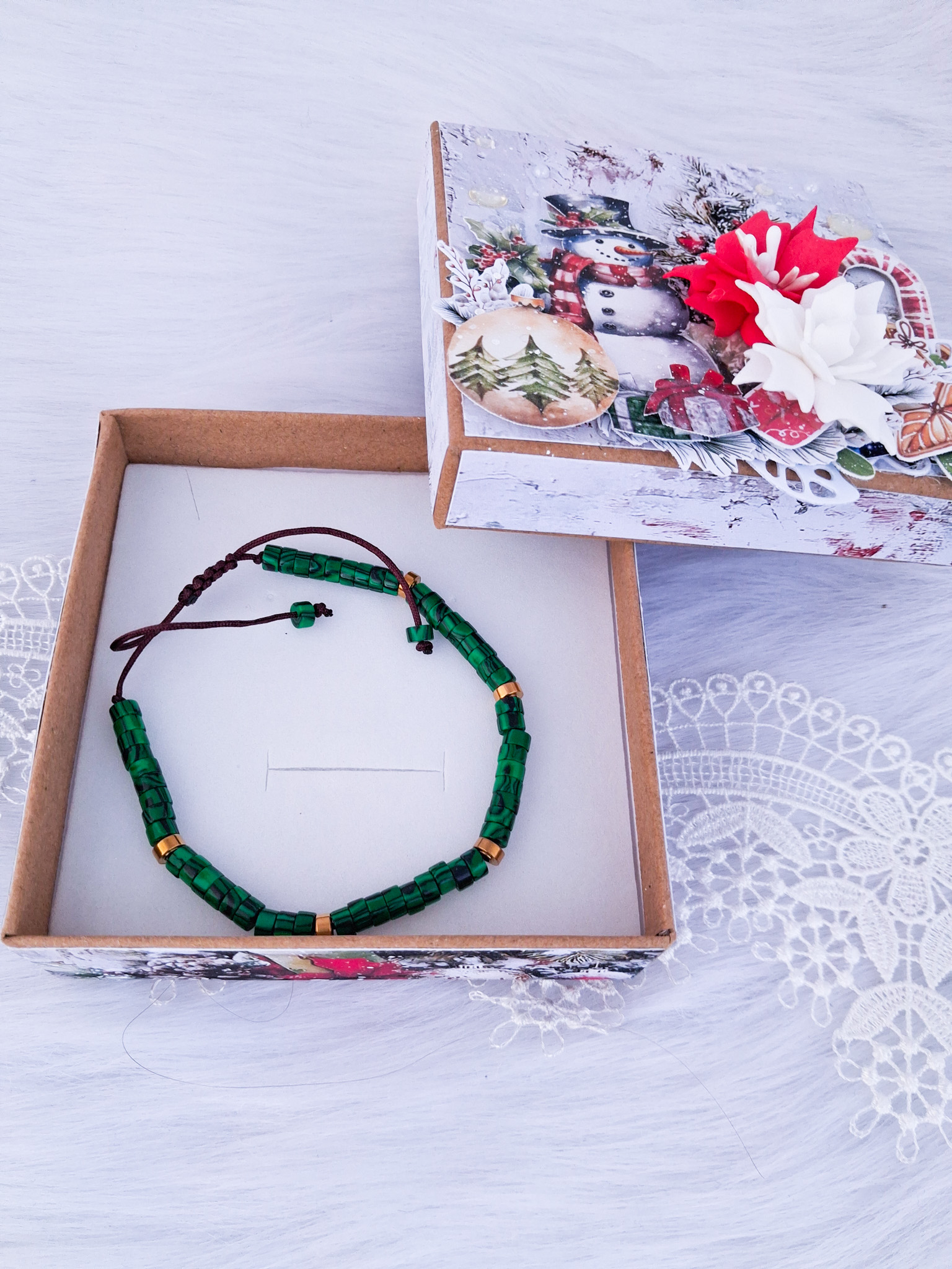 Podaruj bliskiej osobie odrobinę świątecznej magii! Nasze ręcznie robione świąteczne pudełko z bransoletką to wyjątkowy upominek, który zachwyca od pierwszego spojrzenia. Każde pudełko tworzone jest z dbałością o detale, inspirowane świątecznym klimatem i wypełnione ciepłem tradycji.