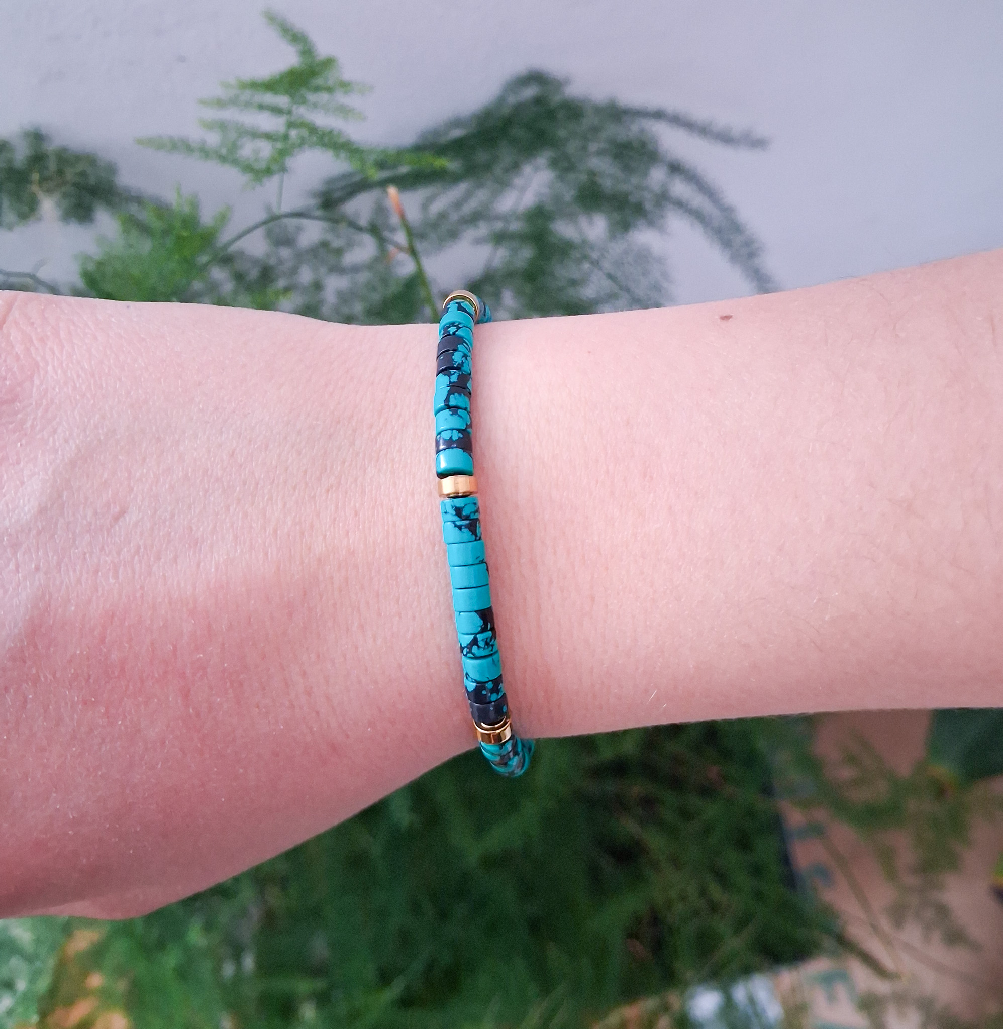 Bransoletka z kamieni naturalnych w kolorze turkusu, beżu i złota - dostępne 2 szt.