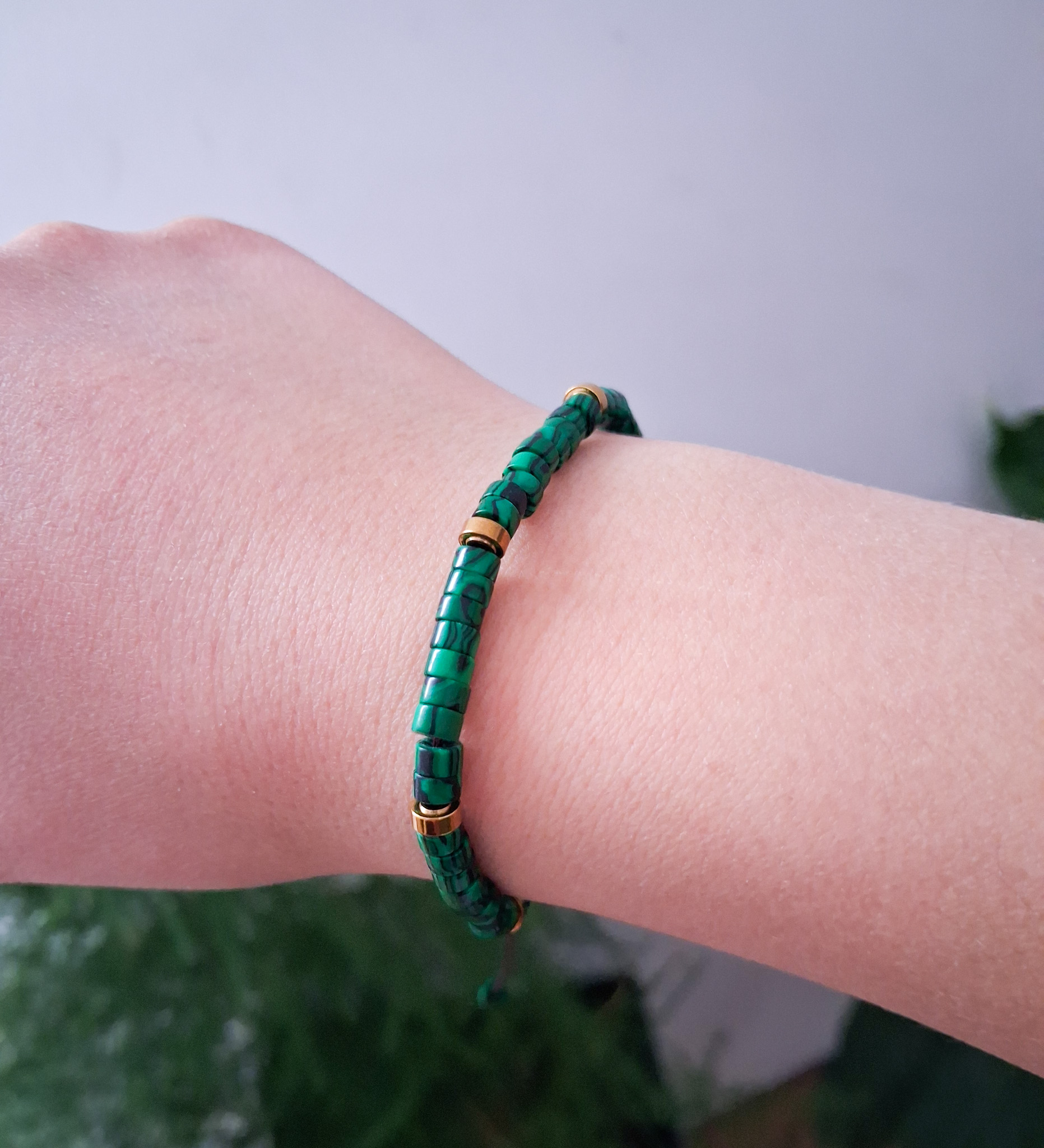 Bransoletka z koralików z malachitu (trwały sztuczny kamień) żywy zielony kolor- dostępne 2 szt.