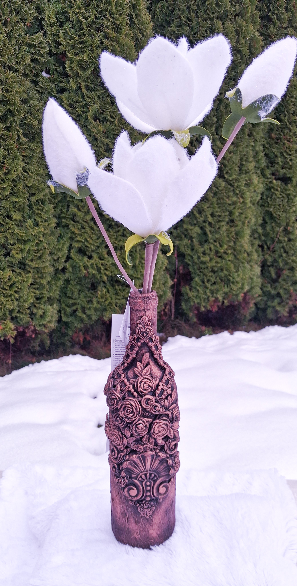 Strona główna » DEKORACJA » Ręcznie zdobiona butelka, ozdoba - srebrna z kwiatem w zestawie