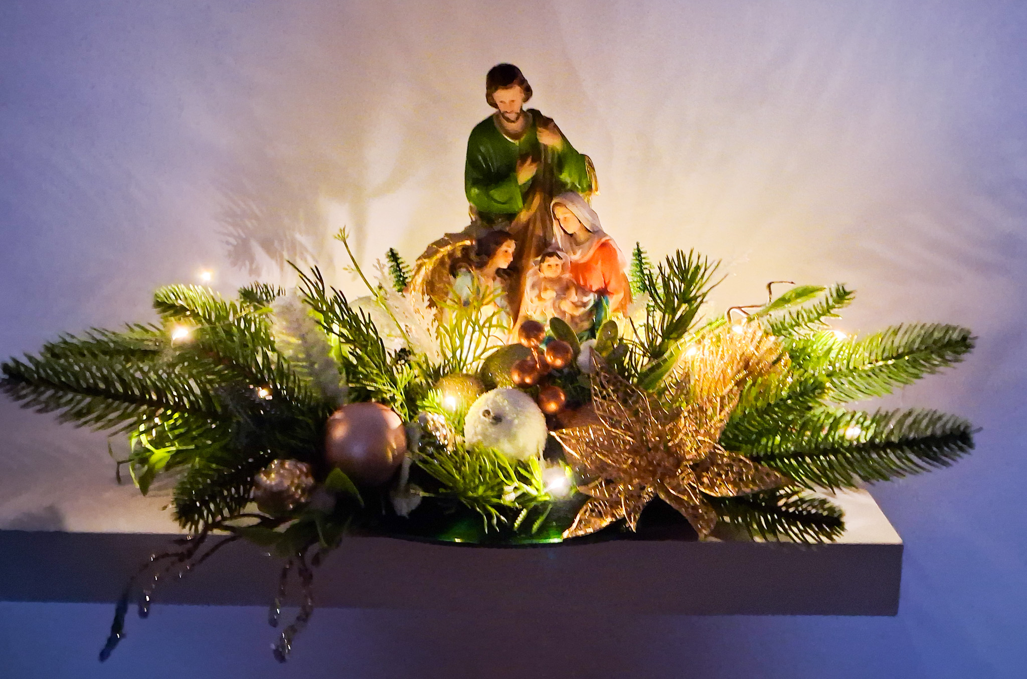 Wprowadź magiczną atmosferę świąt do swojego domu dzięki wyjątkowemu stroikowi bożonarodzeniowemu ze Świętą Rodziną podświetlany. Ten elegancki dekor charakteryzuje się złotym wykończeniem, które dodaje całości luksusowego wyglądu i doskonale podkreśla świąteczny nastrój.