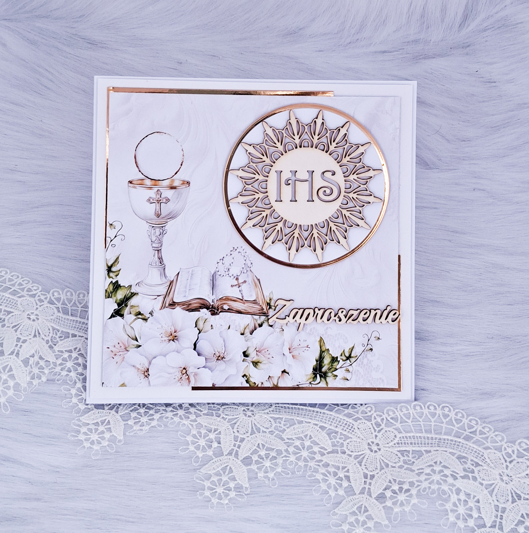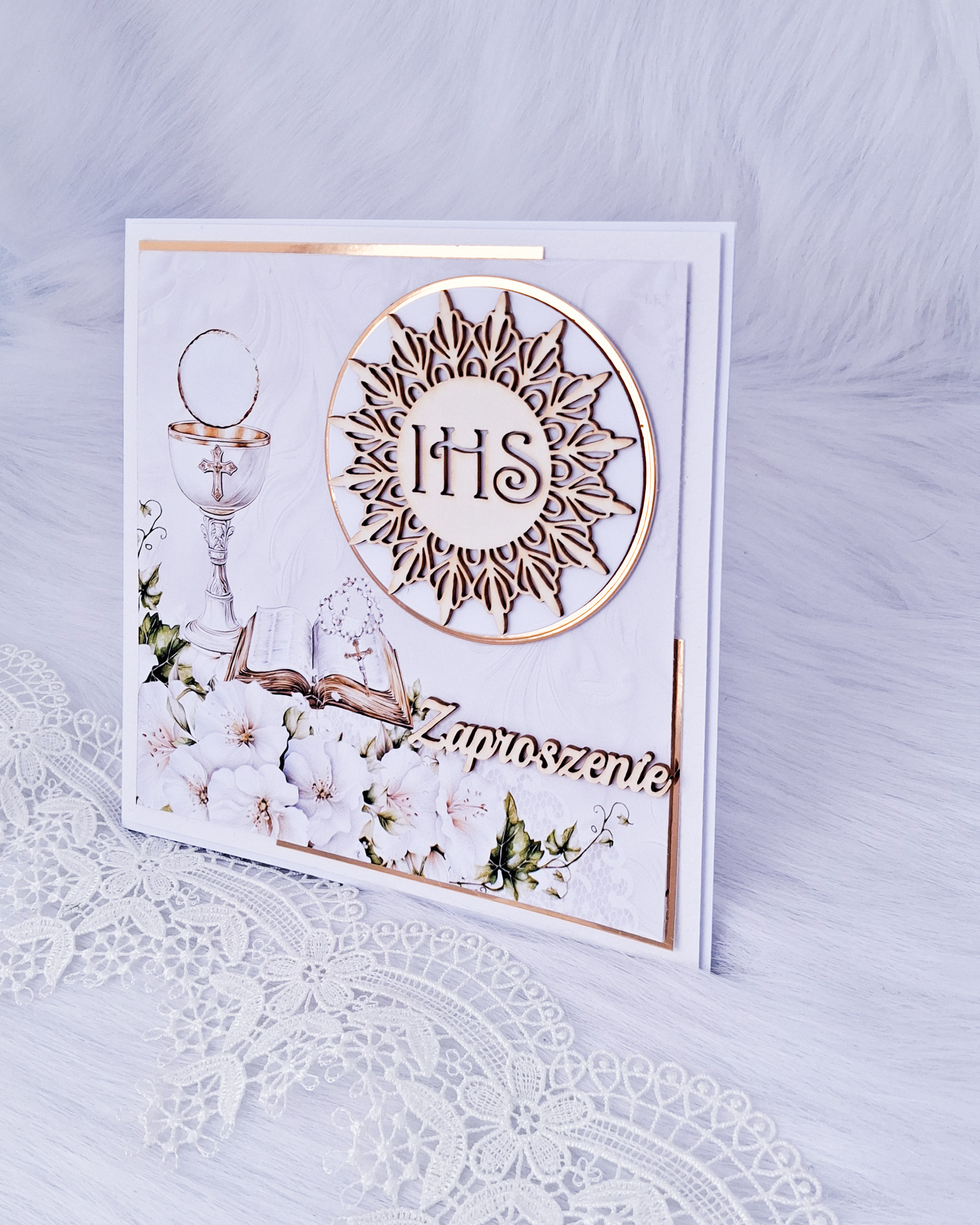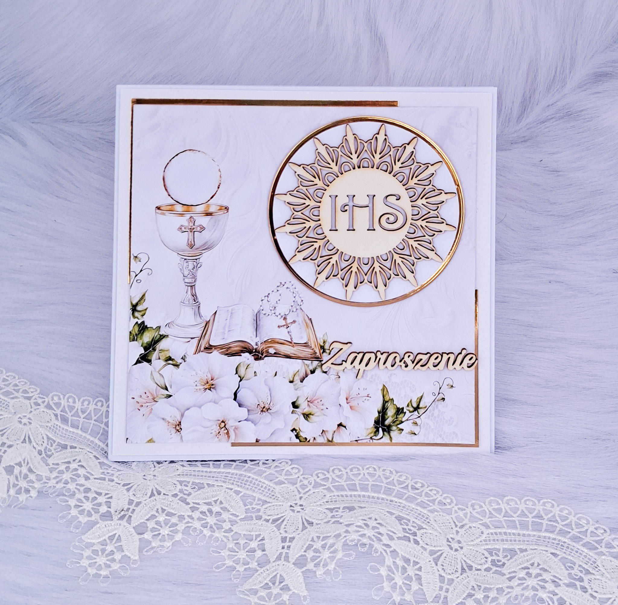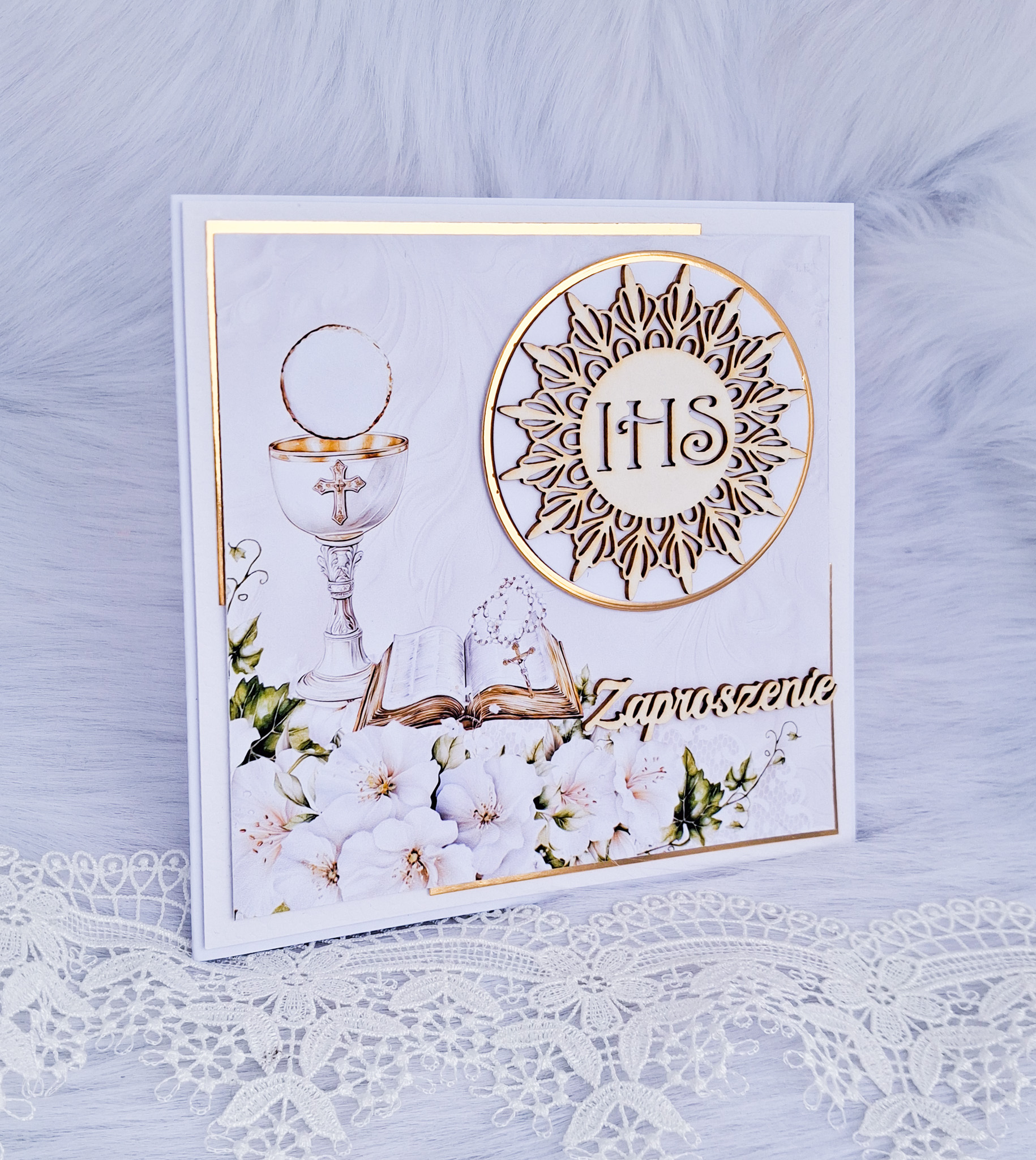 Strona główna » ZAPROSZENIA » Zaproszenie na Pierwszą Komunię Świętą białe ZCHZ 3D