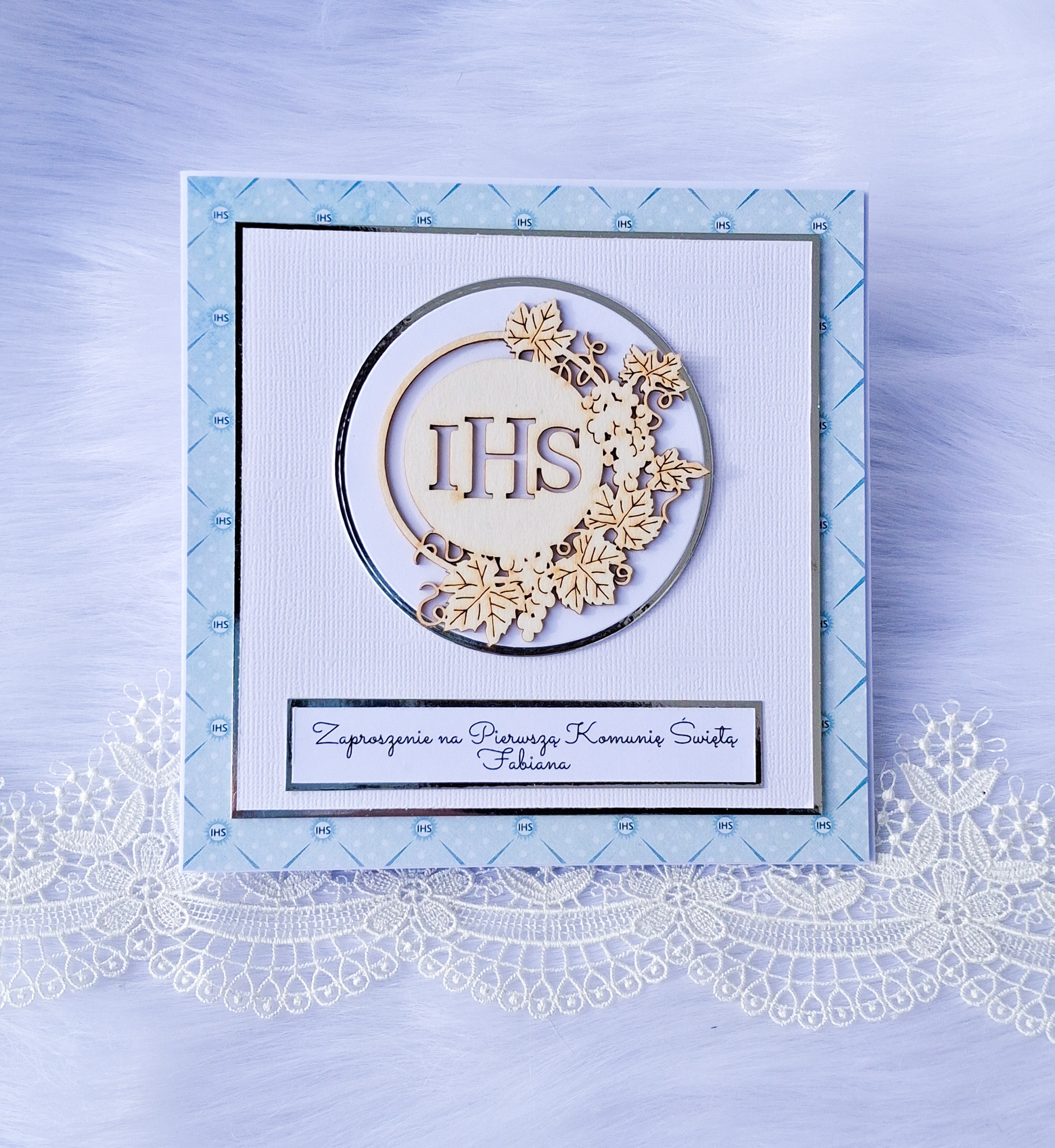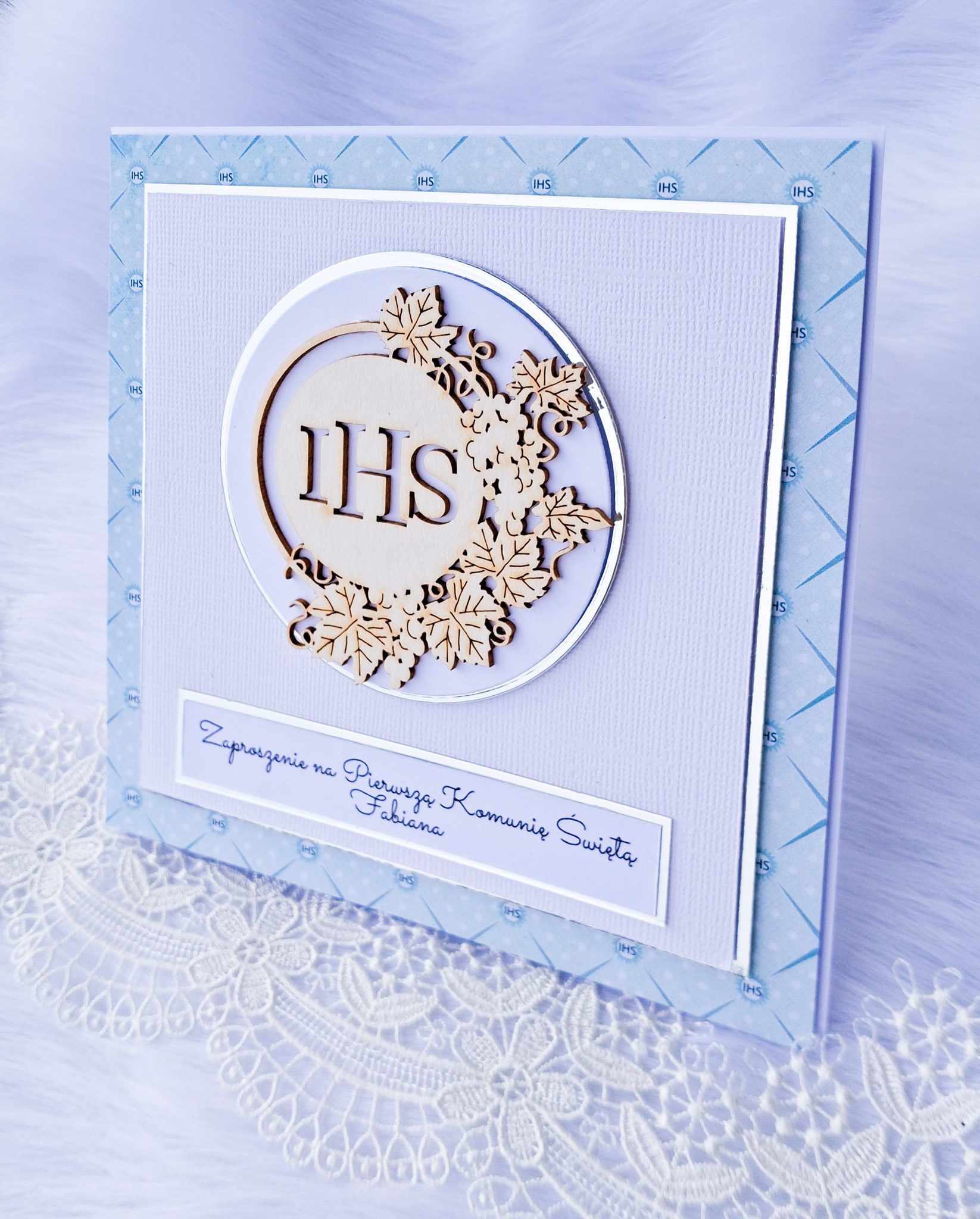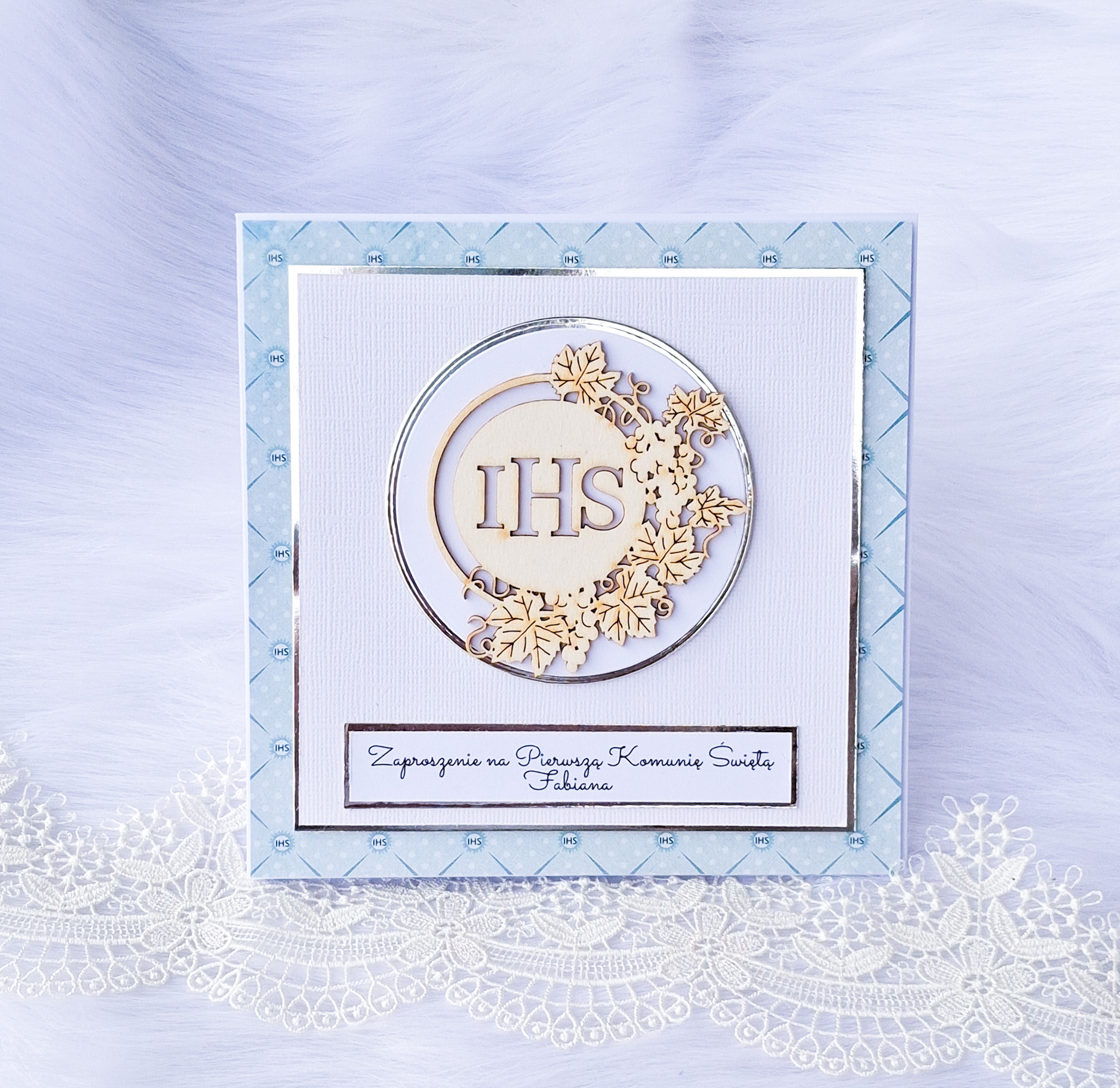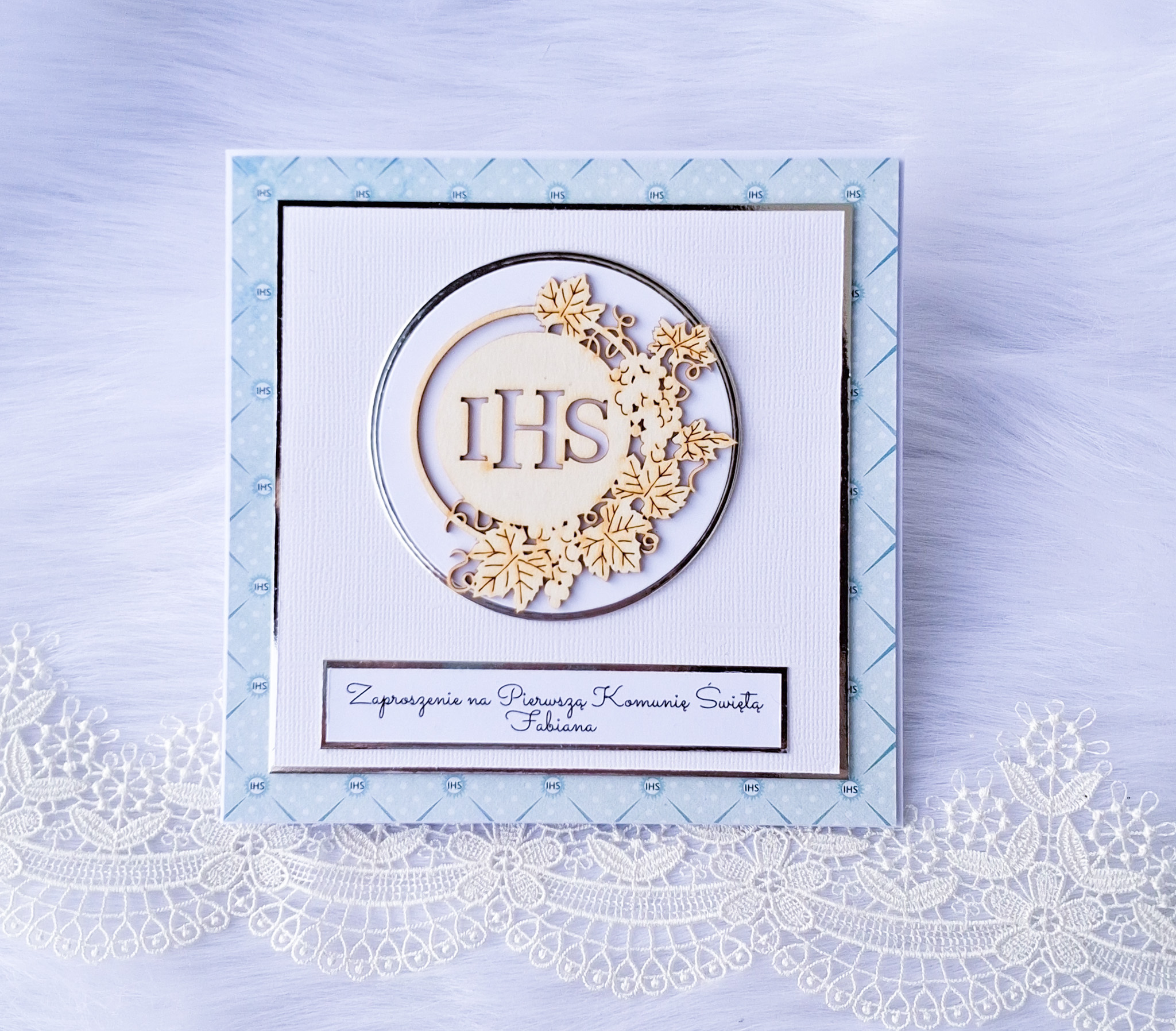 Ręcznie robione zaproszenie na Pierwszą Komunię Świętą z pełną personalizacją