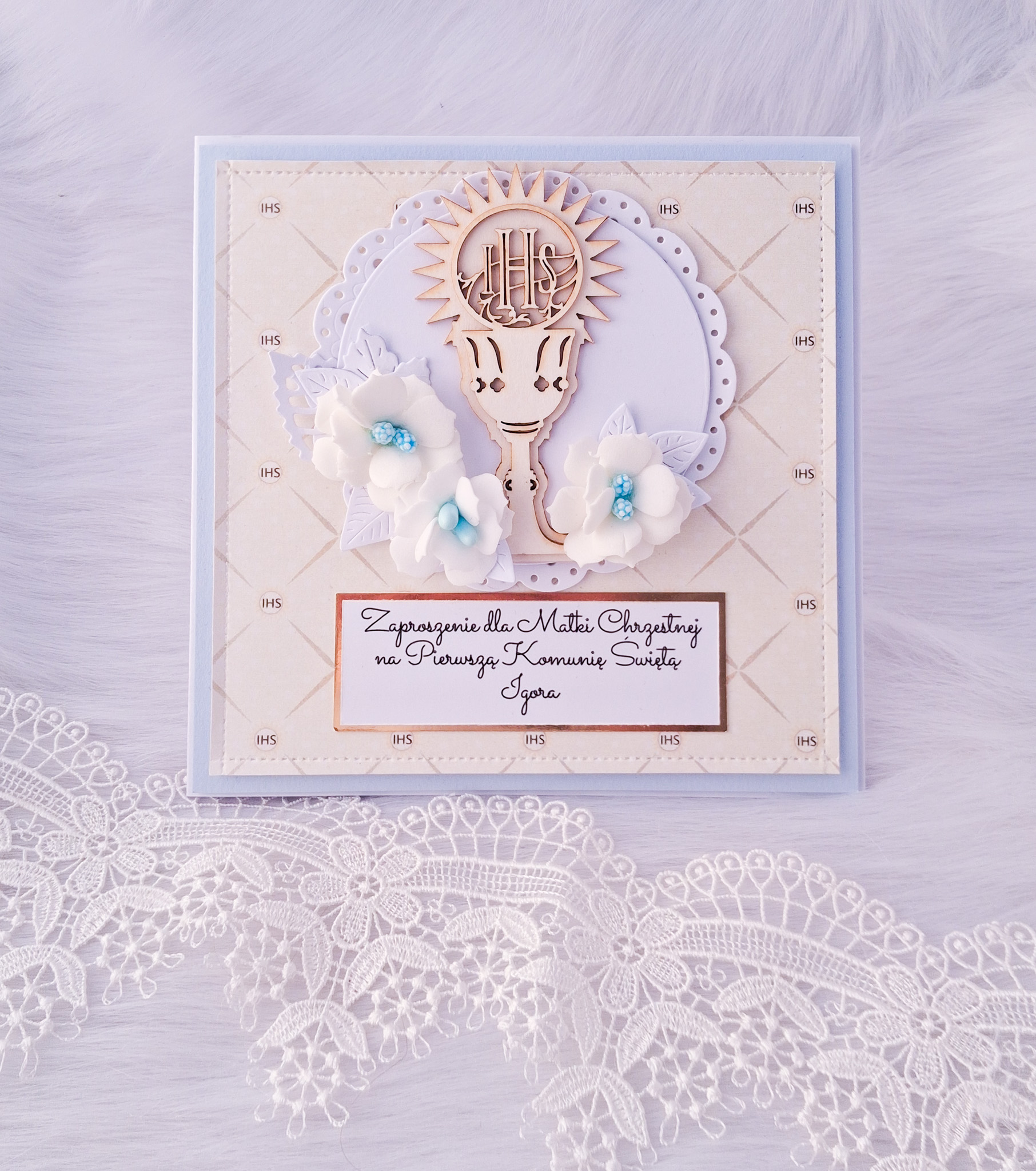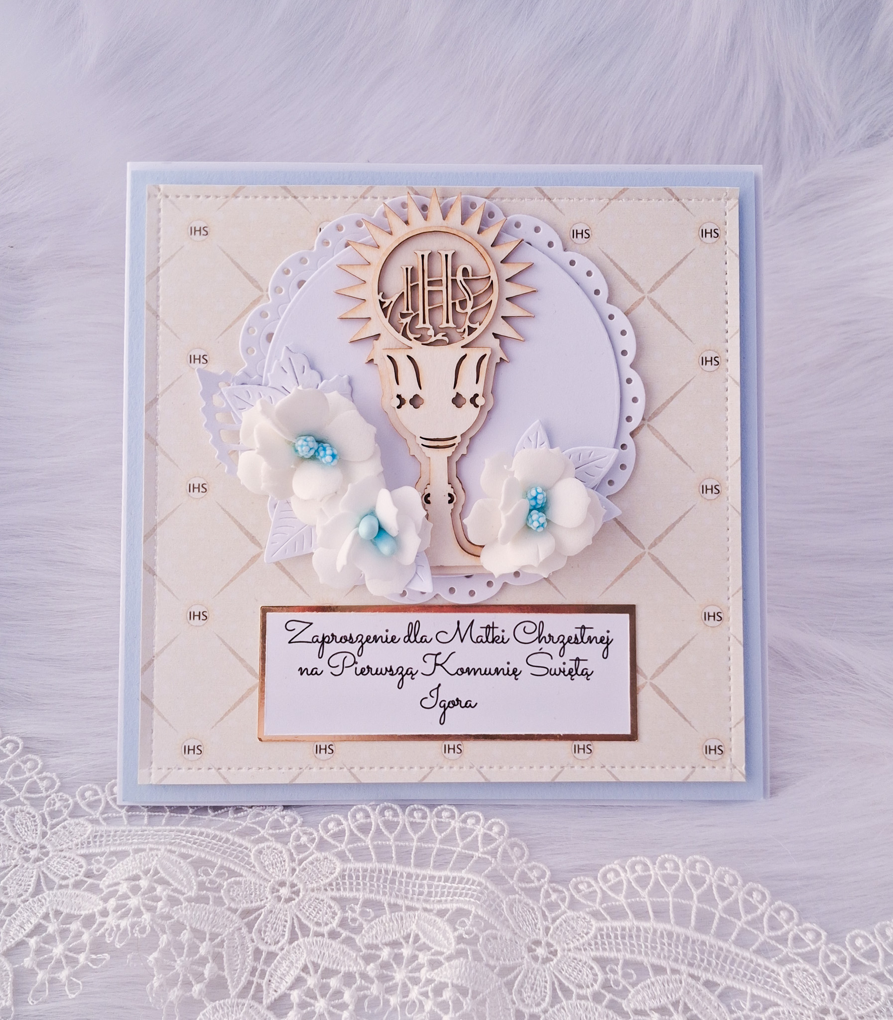 Zaproszenie na Pierwszą Komunię Świętą zostało starannie przygotowana, z myślą o stworzeniu niepowtarzalnych, pięknych pamiątek z tego szczególnego momentu.